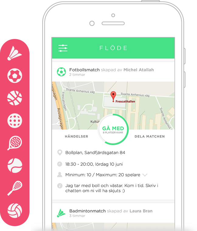 Matchapp är appen för oss som älskar att sporta. Hitta nya medspelare och motståndare, skapa dina egna matcher eller gå med i andras.